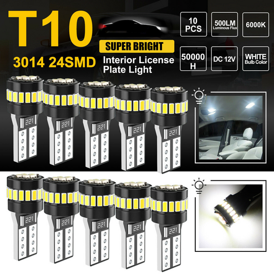 LED Car Bulbs Interior 10PCS T10 194 168 24SMD
