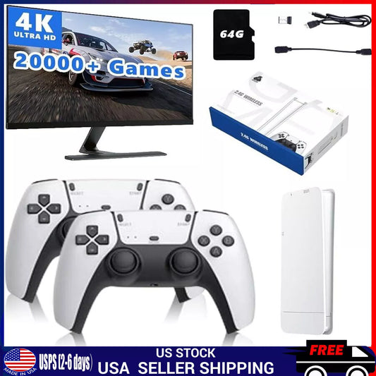Retro Game Stick 4K – 20,000+ Classic Games, HDMI Plug & Play Console + 2 Wireless Controllers