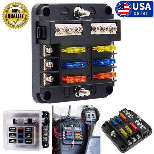 6-Circuit ATC/ATO Blade Fuse Block with Ground & LED Indicator – 100A Max for Automotive, Marine, RV, and DC Power Systems