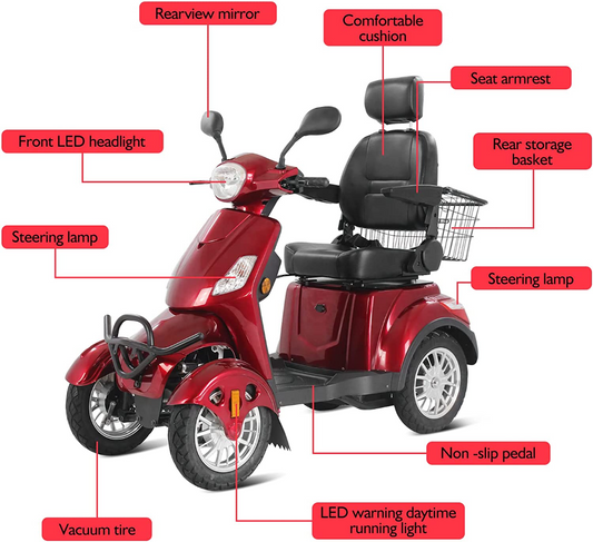 800W 60V 20AH Battery-Powered Four-Wheel Mobility Scooter for Adults and Seniors