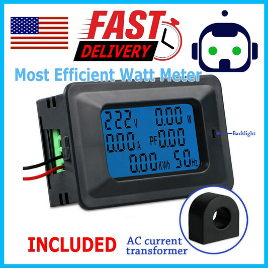 AC Power Meter with LCD Display & Current Transformer – 110V-250V, 100A, Overload Alarm & Energy Monitoring