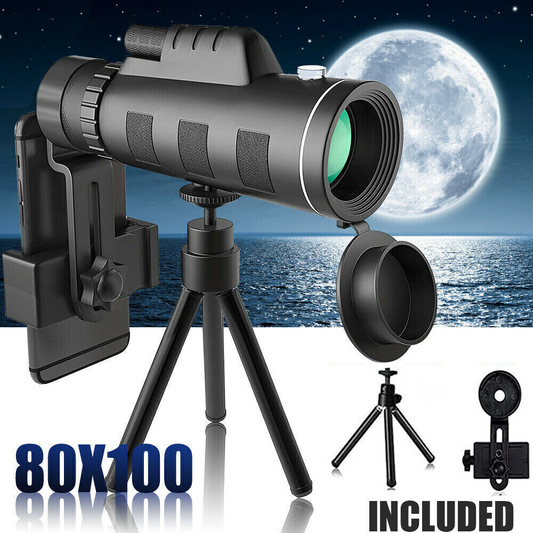 80x100 HD Monocular Telescope – Night Vision Zoom Scope with Phone Adapter & Tripod