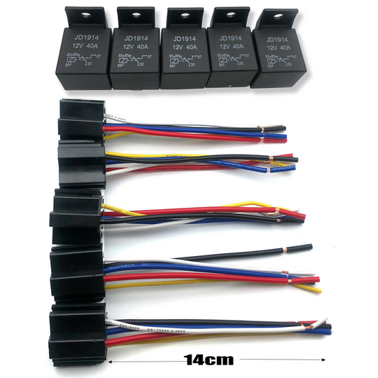 Automotive Relay with Wires & Harness Socket Set 5 Pack 12V 30/40 Amp 5-Pin SPDT