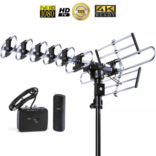 200+ Mile Outdoor HDTV Antenna – 4K 1080P, Motorized 360° Rotation, Amplified 36 dB UHF/VHF, LTE Filter