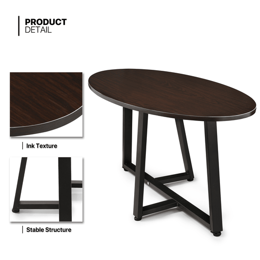 39.5" Walnut Coffee End Table Wooden Oval Home Sofa Tea Desk Metal Crossbar Base