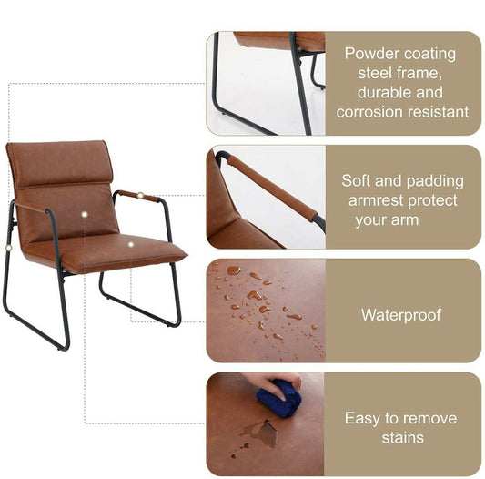 Accent Chair PU Leather Sofa Lounge Chair Living Room Indoor Furniture Brown