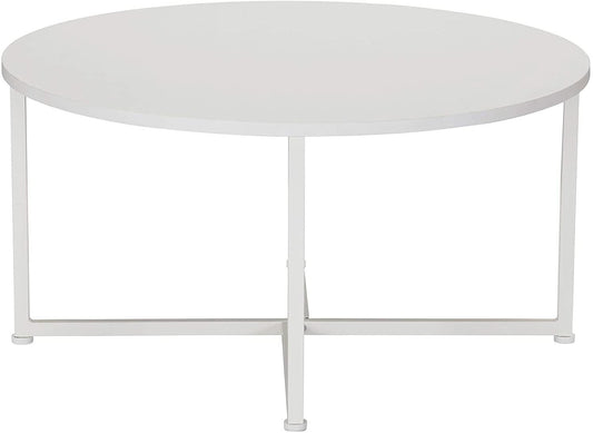 Round Coffee Table Living Room Home Office Side End Wood Table W/ Storage White