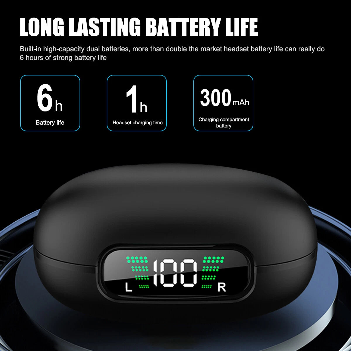 Built with directional transmission technology for immersive, leak-free audio and crystal-clear sound, they feature a durable titanium memory frame, skin-friendly materials, and a compact, pocket-sized charging case. Bluetooth 5.3 ensures a stable connection with low power usage, while intuitive touch controls and a digital battery display make every interaction seamless.