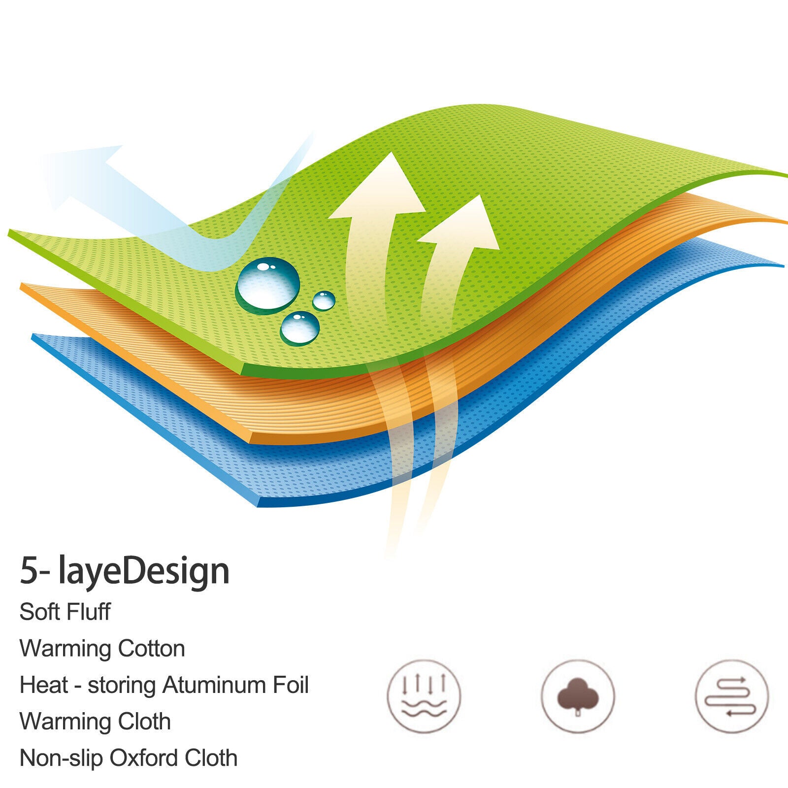 Self-heating pet mat, using super soft fluff, flannel insulation cotton, warm and scratch-resistant cloth, middle folder heat storage and heat preservation aluminum foil, bottom layer anti-slip epoxy oxford cloth 5 layers structure. It can avoid problems such as bacterial growth. The indicated insulation fluff is not easy to fall and fade.